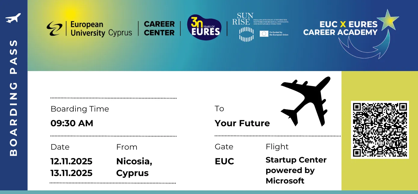On November 12–13, 2025, the European University Cyprus (EUC) will host the EUC x EURES Career Academy, a two-day event dedicated to empowering students and graduates to explore career opportunities across Europe. Under the motto “Your Future Without Borders,” the event invites participants to discover, connect, and learn how mobility can expand their professional horizons.