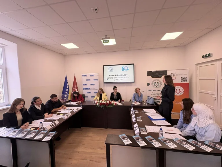 The 9th debate competition held at the Faculty of Law of the Dzemal Bijedic University of Mostar brought together high school and university students in a dynamic exchange of ideas, focused on strengthening critical thinking, argumentation, and public speaking skills.